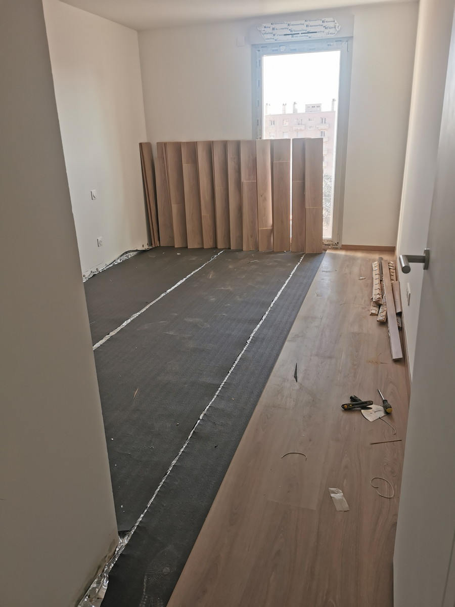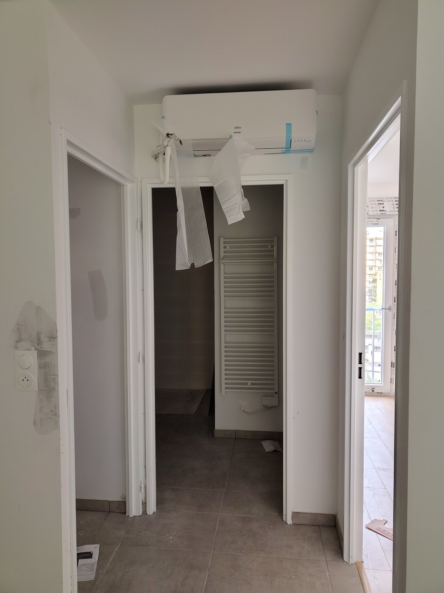 - Carrelage grès émaillé 60×60 avec plinthes assorties dans les pièces de vie